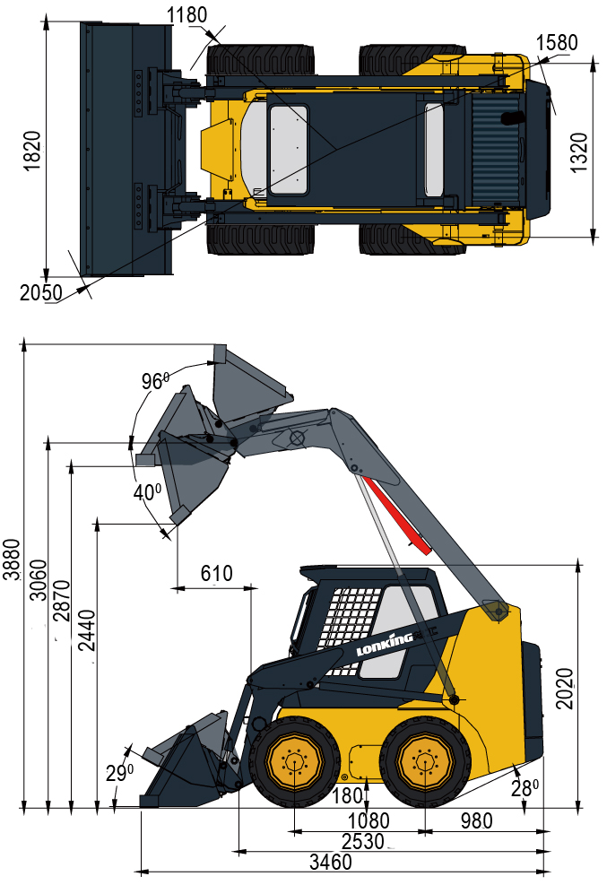 | Высота выгрузки по креплению ковша: | 3060мм. |